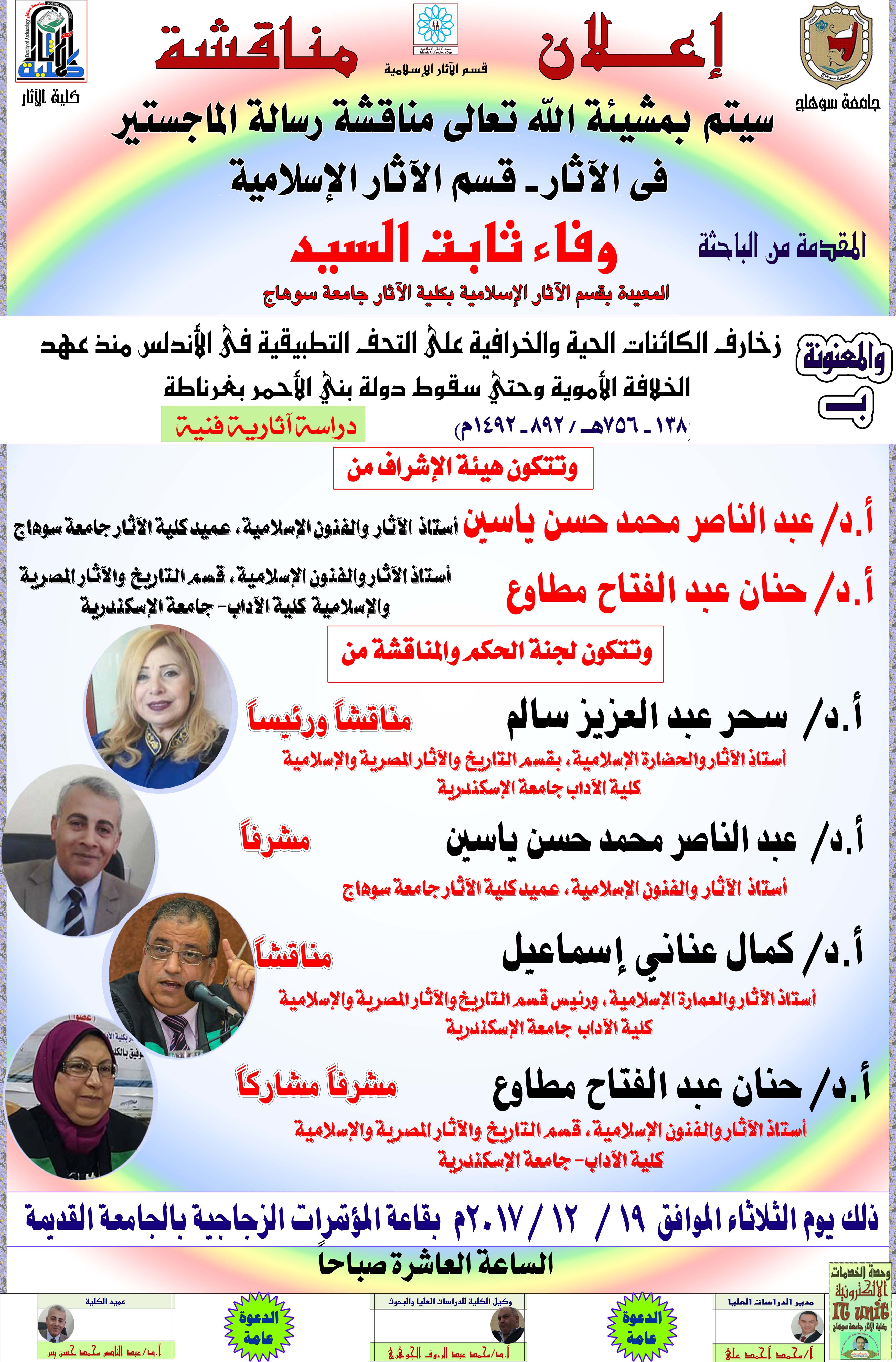 نشر على 7 ديسمبر، 2017نشر في أخبار الكلية،أخبار قسم الآثار الإسلامية إعلان مناقشة رسالة ماجستير بقسم الآثار الإسلامية للباحثة وفاء ثابت المعيدة بالقسم تصفّح المقالات إعلان مناقشة رسالة دكتوراة بقسم الآثار الإسلامية للباحث عامر حسن عجلان المدرس المساعد بالقسمتهنئة بمناسبة الحصول على درجة الدكتوراة للزميل عامر عجلان المدرس المساعد بقسم الآثار الإسلامية اترك تعليقاً إلغاء الردلن يتم نشر عنوان بريدك الإلكتروني. الحقول الإلزامية مشار إليها بـ *التعليق * الاسم * البريد الإلكتروني * الموقع الإلكتروني احفظ اسمي، بريدي الإلكتروني، والموقع الإلكتروني في هذا المتصفح لاستخدامها المرة المقبلة في تعليقي.