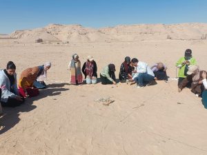 *كما تم عمل المربع؛ وتحديد كيفية التعامل معه، وتحديد الفاصل الترابي، والتدرب على استخدام المسترين والفرشاة في أعمال التنقيب.