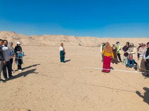 كما قام أ.د. فهيم فتحي إبراهيم عميد كلية الآثار، يرافقه أ.م.د. عامر عجلان وكيل الكلية لشئون البيئة وخدمة المجتمع، أ. عبدالموجود حمدون أمين الكلية، بزيارة موقع التدريب، ومناقشة الطلاب والتعرف على مدى استفادتهم من التدريبات، ثم التقاط الصور التذكارية معهم في الموقع.
