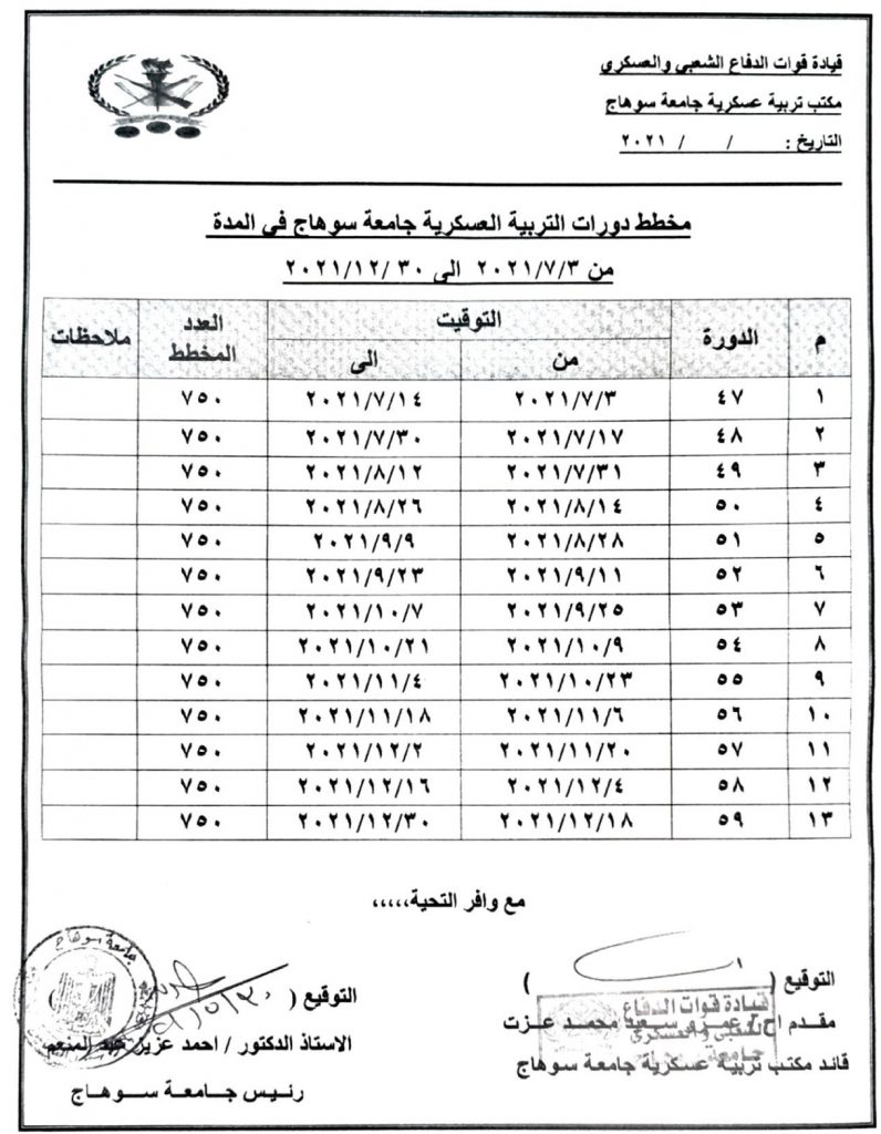اعلان التربية العسكرية لطلاب كلية الآثار جامعة سوهاج