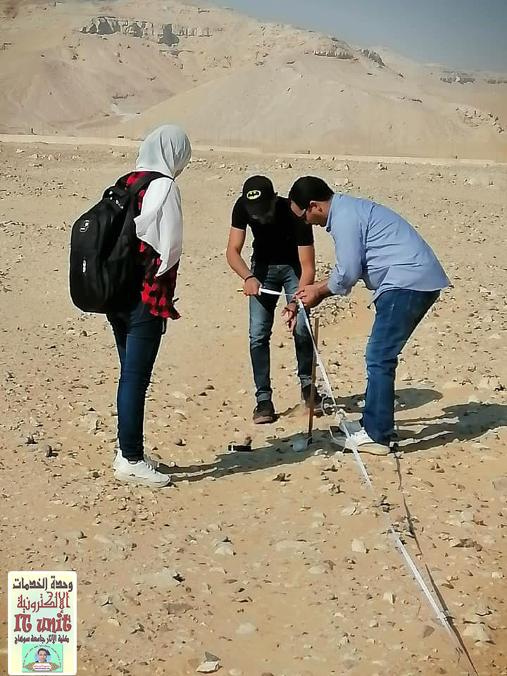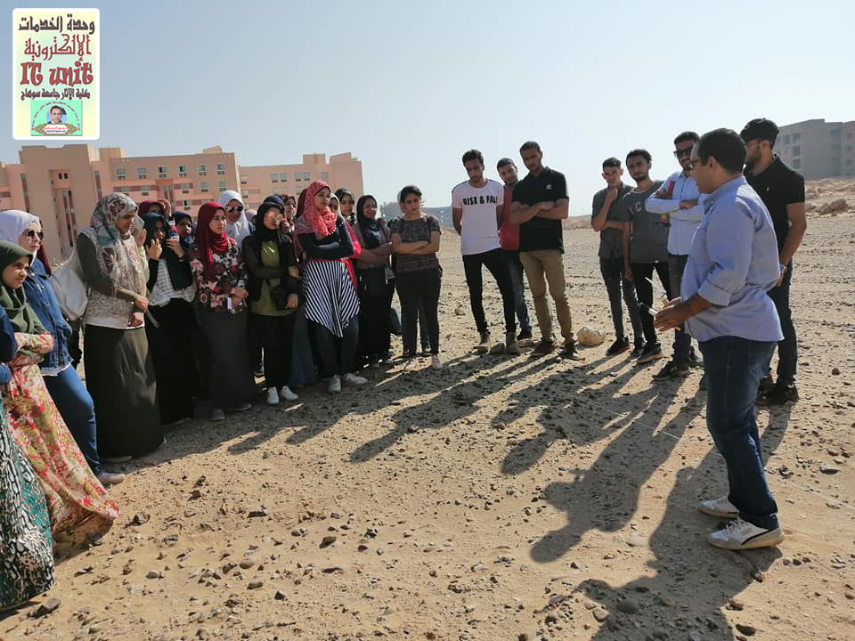 اليوم 30 / 10 / 2019م بدء أعمال التدريب الميداني لطلاب الفرقة الرابعة بقسم الآثار الإسلامية بكلية الآثار جامعة سوهاج على أعمال التنقيب الأثري والبداية اليوم بالتدريب على أعمال (( المسح الأثري )).