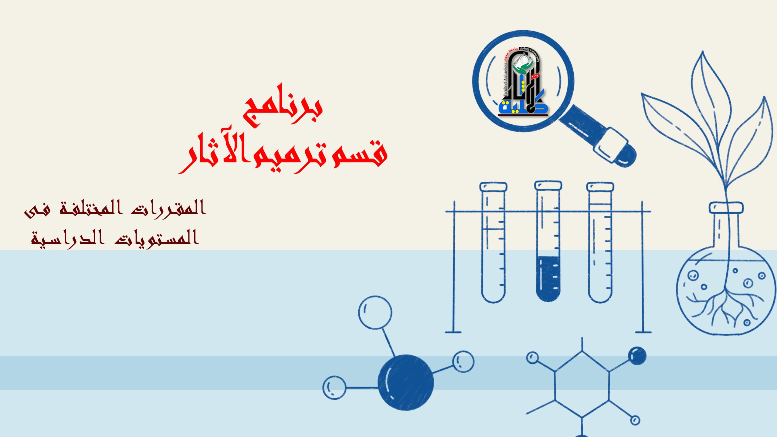 – يقوم القسم بدراسة كل ما يتعلق بحفظ وصيانة ومعالجة وترميم الآثار العضوية وغير العضوية، الثابتة المنقولة، وذلك من خلال دراسة مجموعة من المواد الكميائية والبيولوجية المختلفة. بالإضافة إلي بعض مواد التاريخ والآثار. وهو القسم العملي الوحيد في الكلية.
