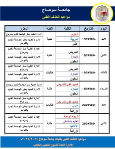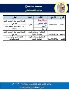بواسطة arcنشر على 4 سبتمبر، 2024نشر في أخبار الكليةلا تعليقات على تعليمات مهمه عن مواعيد الكشف الطبي لطلاب الكلية الجدد والأوراق المطلوبة ورسوم الكشف الطبي تعليمات مهمه عن مواعيد الكشف الطبي لطلاب الكلية الجدد والأوراق المطلوبة ورسوم الكشف الطبي تصفّح المقالات برنامج ترميم الآثارطلابنا الأعزاء الآن يمكنكم الانضمام إلي الجروب الرسمي للفرقة الخاصة بكم اترك تعليقاً إلغاء الردلن يتم نشر عنوان بريدك الإلكتروني. الحقول الإلزامية مشار إليها بـ *التعليق * الاسم * البريد الإلكتروني * الموقع الإلكتروني احفظ اسمي، بريدي الإلكتروني، والموقع الإلكتروني في هذا المتصفح لاستخدامها المرة المقبلة في تعليقي.