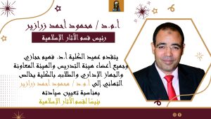 تعيين أ.م.د / محمود أحمد زرازير بمناسبة تعيين رئيسًا لقسم الآثار الإسلامية