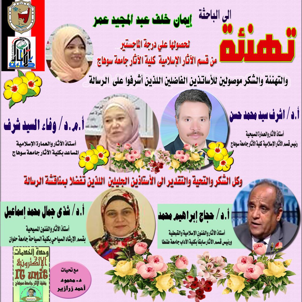 نشر على 10 أكتوبر، 2017نشر في أخبار الكلية،أخبار قسم الآثار الإسلامية،أخبار قسم الترميم،اخبار قسم الآثار المصرية تهنئة بمناسبة الحصول على درجة الماجستير من قسم الآثار الإسلامية للباحثة إيمان العارف (من خارج الجامعة) تصفّح المقالات تهنئة للأستاذ الدكتور محمود الزراعي الحمراوي لتجديد الثقة فى سيادته للعام الثاني رئيساً لقسم الآثار المصريةتهنئة للاستاذ الدكتور محمود الخضرجي لتجديد ندب سيادته عميداً للمعهد العالى للسياحة والفنادق بالأقصر اترك تعليقاً إلغاء الردلن يتم نشر عنوان بريدك الإلكتروني. الحقول الإلزامية مشار إليها بـ *التعليق * الاسم * البريد الإلكتروني * الموقع الإلكتروني احفظ اسمي، بريدي الإلكتروني، والموقع الإلكتروني في هذا المتصفح لاستخدامها المرة المقبلة في تعليقي.