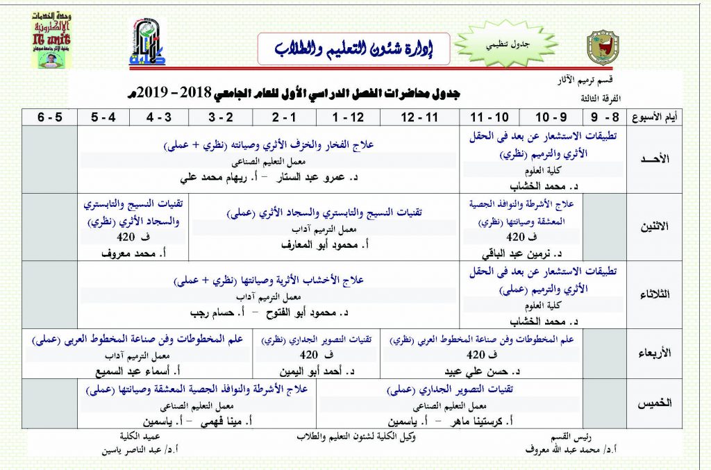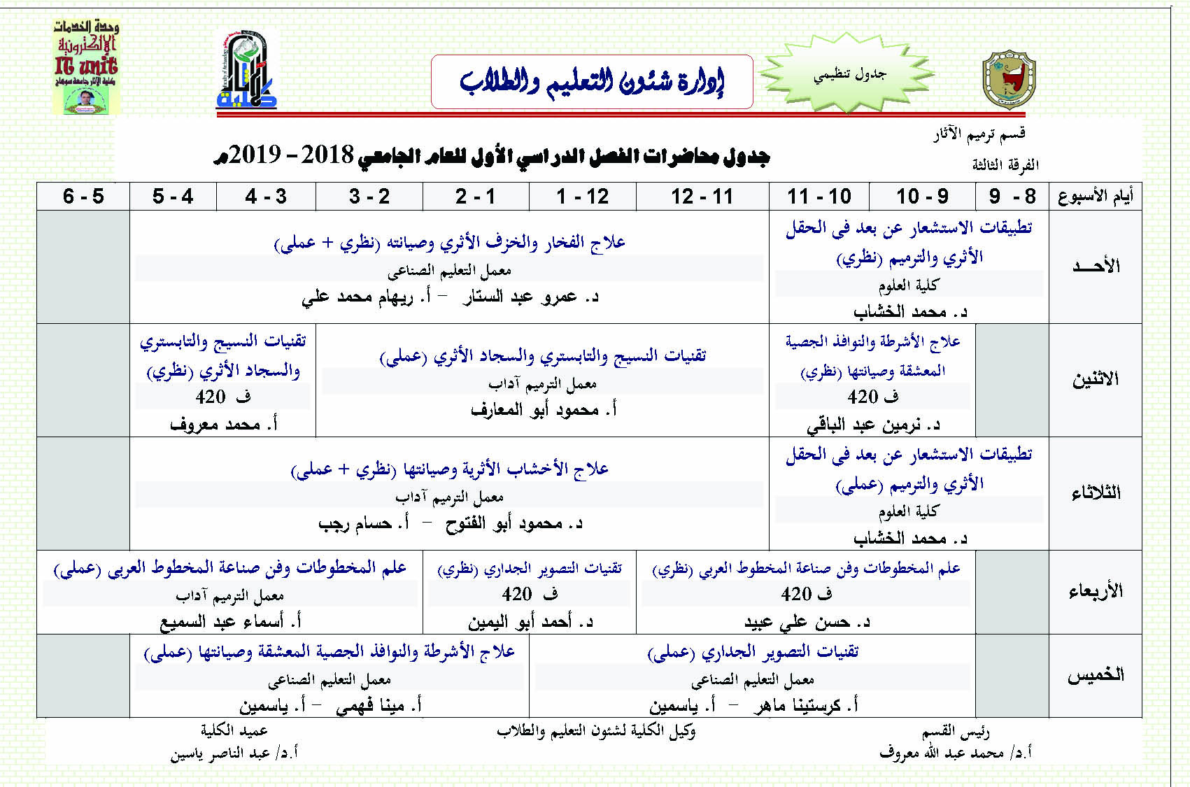 نشر على 27 سبتمبر، 2018نشر في أخبار الكلية،أخبار قسم الترميم الملف بصيغة pdf http://staffsites.sohag-univ.edu.eg/stuff/advs/show/844?p=advs جدول محاضرات الفصل الدراسي الأول للعام الجامعي 2018 – 2019م، الفرقة الثالثة – قسم ترميم الآثار كلية الآثار تصفّح المقالات جدول محاضرات الفصل الدراسي الأول للعام الجامعي 2018 – 2019م، الفرقة الثانية – قسم ترميم الآثار كلية الآثارتنبيه هام لطلاب الفرقتين الثانية والثالثة بكلية الآثار جامعة سوهاج اترك تعليقاً إلغاء الردلن يتم نشر عنوان بريدك الإلكتروني. الحقول الإلزامية مشار إليها بـ *التعليق * الاسم * البريد الإلكتروني * الموقع الإلكتروني احفظ اسمي، بريدي الإلكتروني، والموقع الإلكتروني في هذا المتصفح لاستخدامها المرة المقبلة في تعليقي.