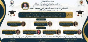 حضور مناقشة الزميل العزيز / عبد الناصر على محمد أحمد – معيد بالقسم وذلك يوم السبت المقبل الموافق ٢٠٢٥/٤/٢٦ الساعة ١١ صباحًا