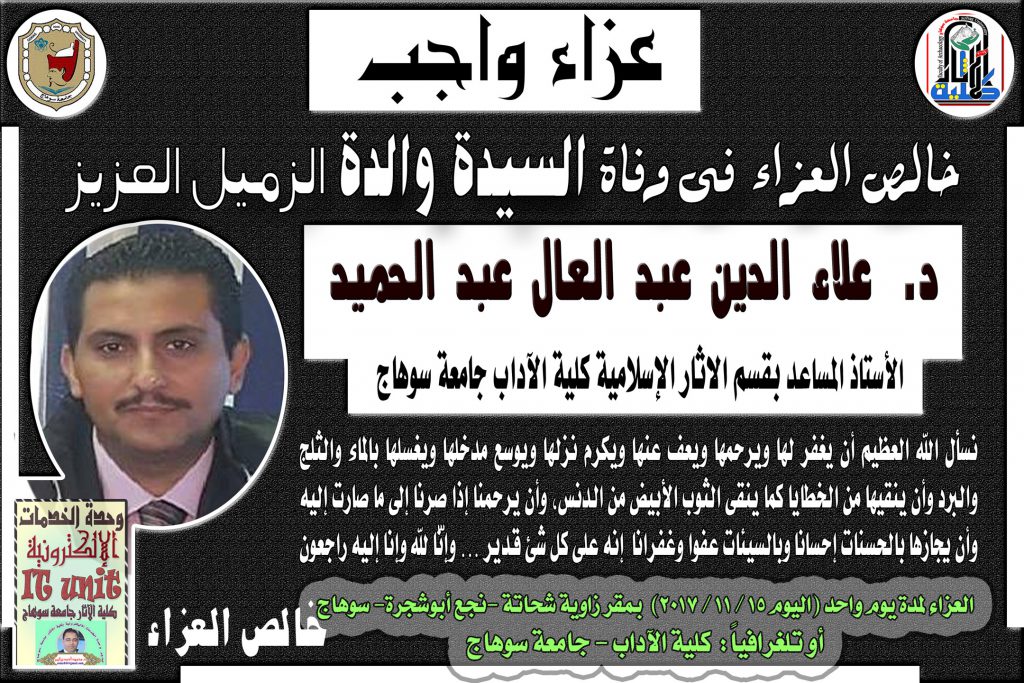 نشر على 15 نوفمبر، 2017نشر في أخبار الكلية،أخبار قسم الآثار الإسلامية،أخبار قسم الترميم،اخبار قسم الآثار المصرية خالص العزاء فى وفاة السيدة والدة الزميل العزيز د. علاء الدين عبد العال عبد الحميد تصفّح المقالات السادة الأفاضل أعضاء هيئة التدريس والمدرسين المساعدين والمعيدين بكلية الآثار مدعوون لحضور اجتما السيد الستاذ الدكتور/ أحمد عزيز … رئيس الجامعةإعلان تعلن وحدة تطوير نظم تقويم الطلاب والامتحانات عن عقد ندوة للسادة معاوني أعضاء هيئة التدريس والطلاب اترك تعليقاً إلغاء الردلن يتم نشر عنوان بريدك الإلكتروني. الحقول الإلزامية مشار إليها بـ *التعليق * الاسم * البريد الإلكتروني * الموقع الإلكتروني احفظ اسمي، بريدي الإلكتروني، والموقع الإلكتروني في هذا المتصفح لاستخدامها المرة المقبلة في تعليقي.