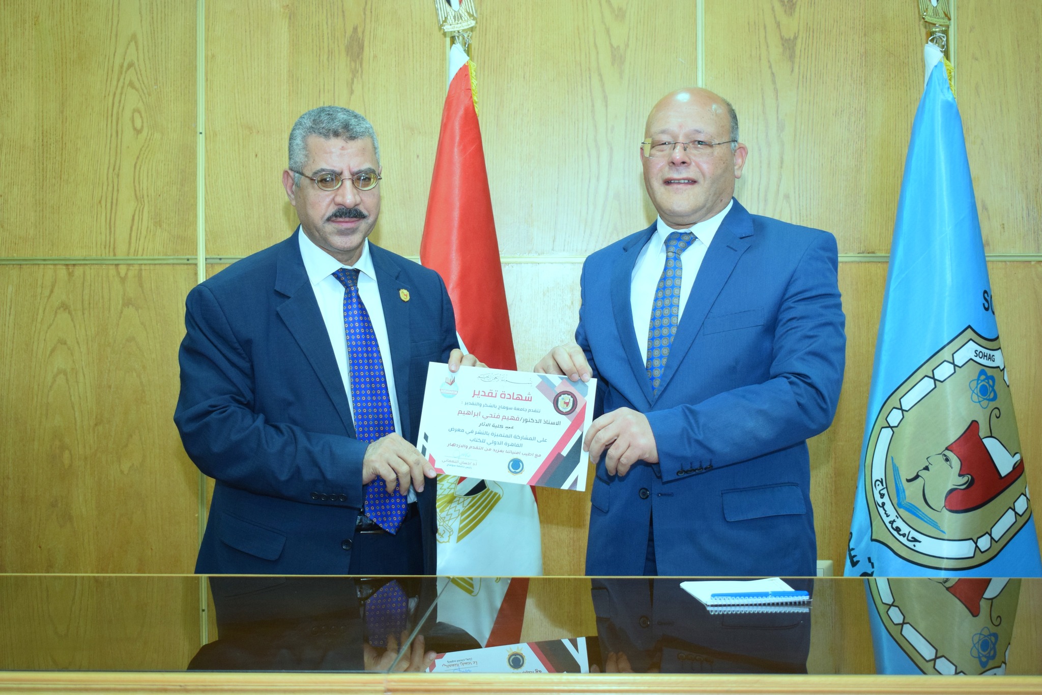رئيس جامعة سوهاج يكرّم السادة اعضاء هيئة التدريس بالكلية لمشاركتهم بمؤلفاتهم بمعرض القاهرة الدولي للكتاب فى دورته الـ ٥٦