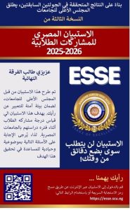على طلاب الفرقة الرابعة الدخول على الاستبيان المصري للمشاركات الطلابية 2025-2026 لإبداء رايهم
