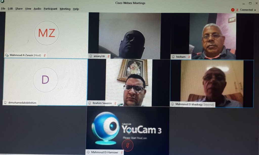 عقد اليوم الثلاثاء الموافق 21 / 4 / 2020م قسم الآثار المصريةمجلساً طارئاً لمناقشة الموضوعات البحثية التى سوف تطرح على الطلاب بواسطة تقنية الـ Video Conference ببرنامج Cisco Webex Meetings