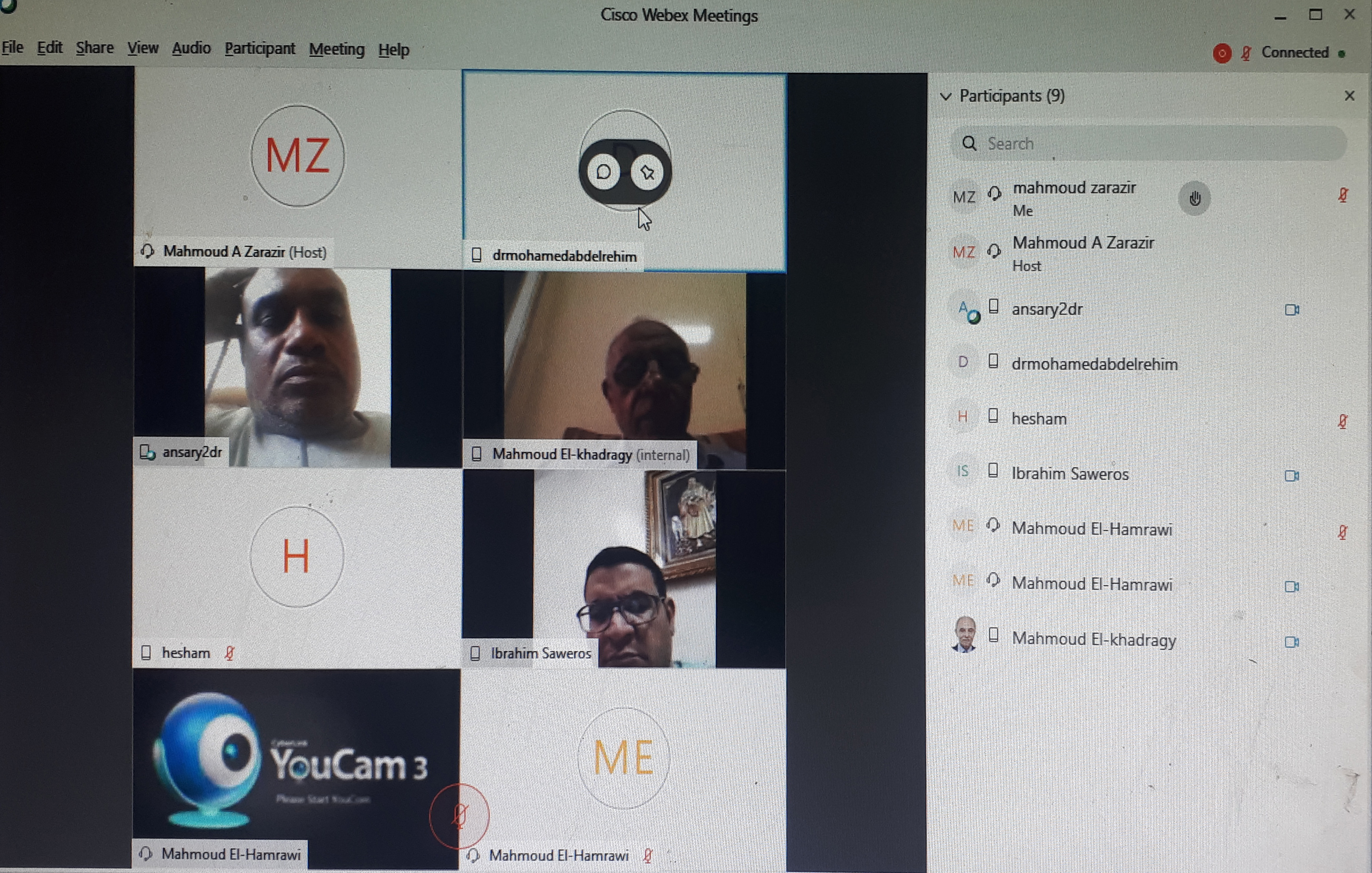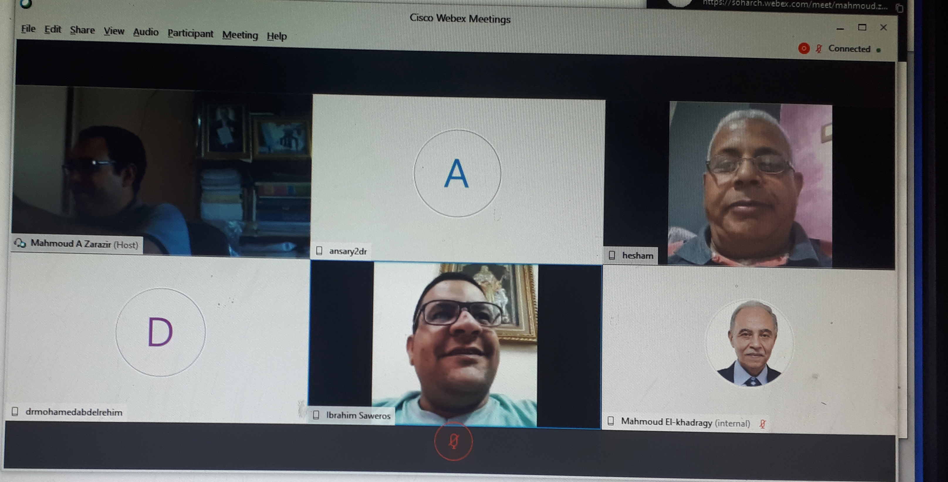 عقد اليوم الثلاثاء الموافق 21 / 4 / 2020م قسم الآثار المصريةمجلساً طارئاً لمناقشة الموضوعات البحثية التى سوف تطرح على الطلاب بواسطة تقنية الـ Video Conference ببرنامج Cisco Webex Meetings