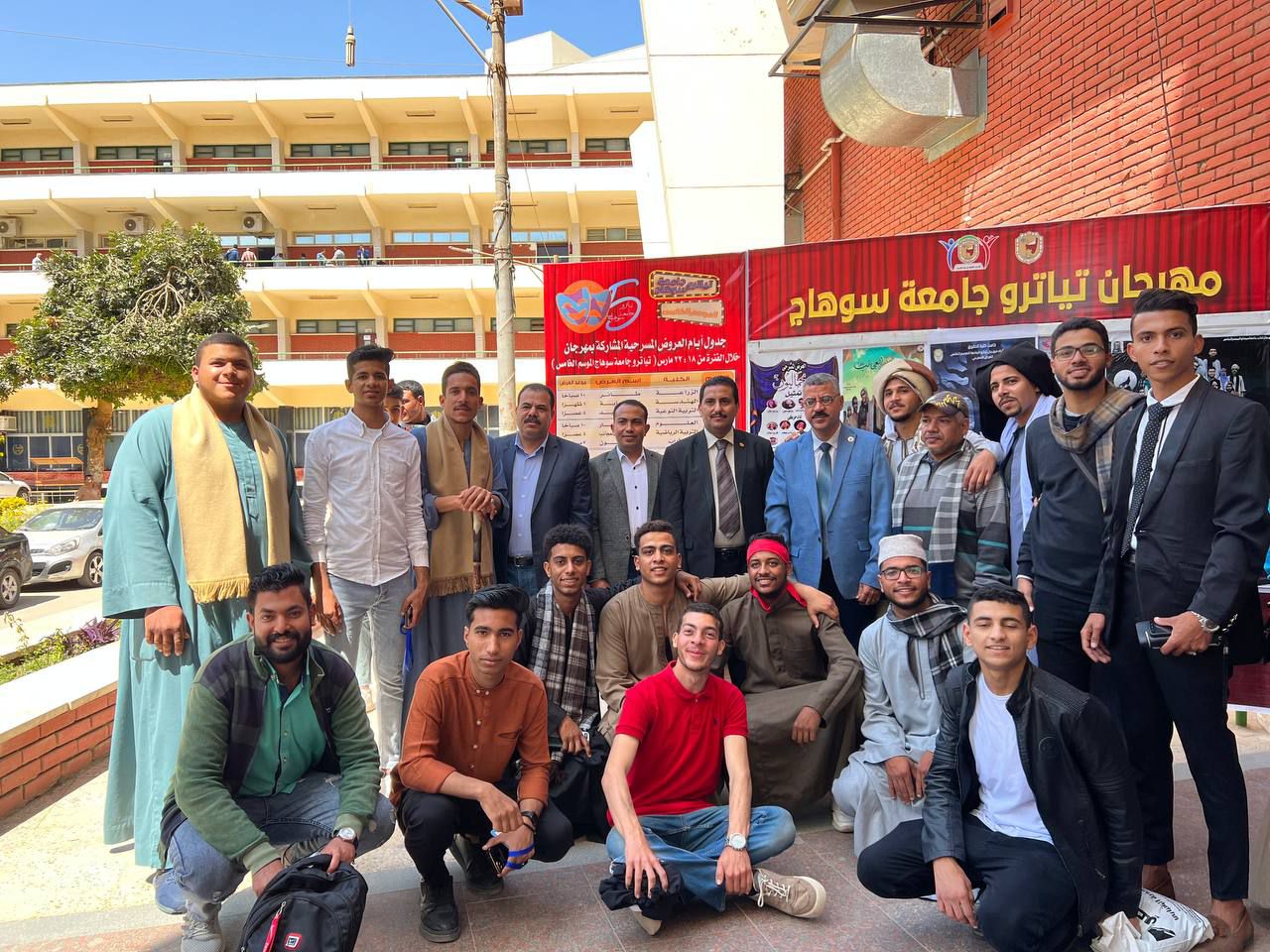 تحت رعاية أ.د/ مصطفي عبدالخالق رئيس جامعة سوهاج وأ.د/ عبدالناصر ياسين نائب رئيس الجامعة لشئون التعليم والطلاب والمشرف علي عمادة كلية الاثار وأ.د/ فهيم فتحي حجازي وكيل كلية الاثار لشئون التعليم والطلاب ورعاية شباب كلية الاثار متمثلاً في أ/ علاء الدين بدري مدير رعاية شباب الكلية والاستاذة انصاف رمضان واتحاد طلاب كليه الاثار وعلي رأسهم احمد بكري رئيس اتحاد طلاب كلية الاثار تم عرض مسرح كلية الاثار بعنوان ” الوادي السعيد ” تأليف وإخراج أ/ ياسين محمد ياسين.