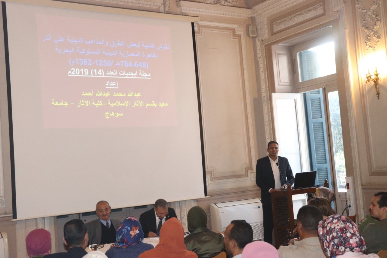 شارك أ/ عبد الله محمد عبد الله .. المعيد بقسم الآثار الإسلامية فى الملتقي العلمي الأول لشباب الباحثين بعنوان “الجديد في الدراسات المملوكية” والذي نُظم من قبل المعهد العلمي الفرنسي للآثار الشرقية بالتعاون مع قسم الآثار بكلية الآداب- جامعة عين شمس، والذي عُقد يومي الأثنين والثلاثاء 9/10- 12 – 2019م، وذلك ببحث بعنوان: نقوش كتابية لبعض الطرق والمذاهب الدينية علي آثار القاهرة المعمارية الدينية المملوكية البحرية (648-784هـ /1250-1382م): دراسة في تحديد المضمون