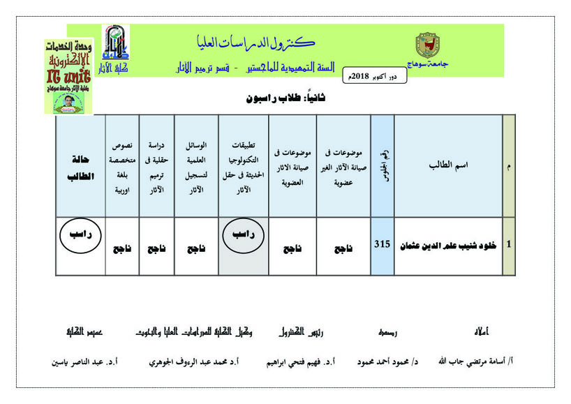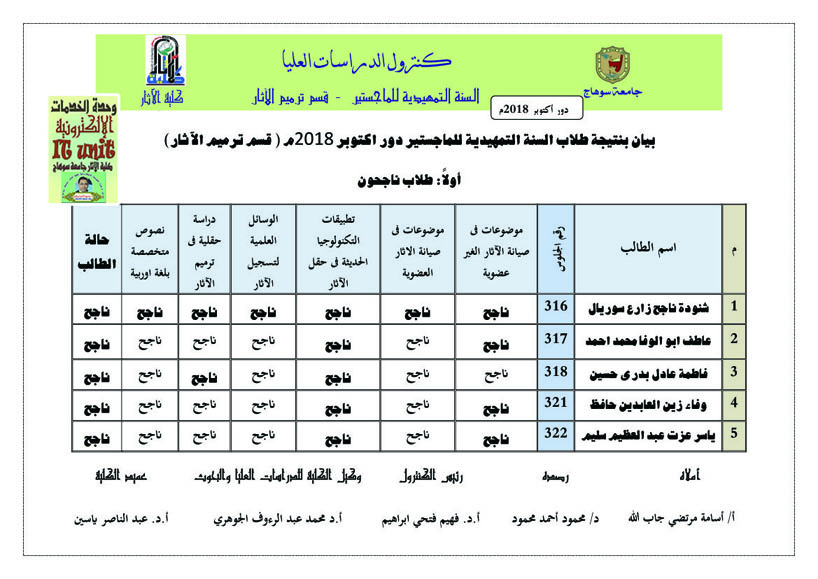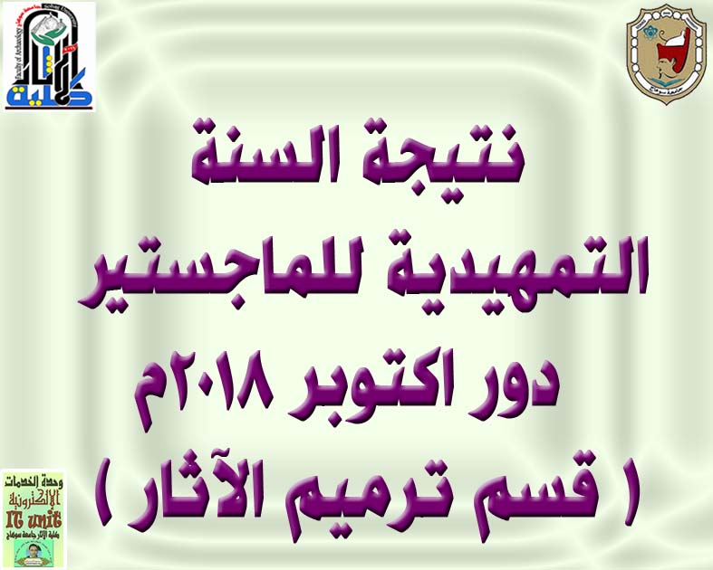 نشر على 15 يناير، 2019نشر في أخبار الكلية،أخبار قسم الآثار الإسلامية،أخبار قسم الترميم،اخبار قسم الآثار المصرية نتيجة السنة التمهيدية للماجستير دور اكتوبر 2018م ( قسم ترميم الآثار ) تصفّح المقالات نتيجة السنة التمهيدية للماجستير دور اكتوبر 2018م ( قسم الآثار المصرية)نتيجة الفرقة الأولى دبلوم الآثار المصرية دور اكتوبر 2018م اترك تعليقاً إلغاء الردلن يتم نشر عنوان بريدك الإلكتروني. الحقول الإلزامية مشار إليها بـ *التعليق * الاسم * البريد الإلكتروني * الموقع الإلكتروني احفظ اسمي، بريدي الإلكتروني، والموقع الإلكتروني في هذا المتصفح لاستخدامها المرة المقبلة في تعليقي.