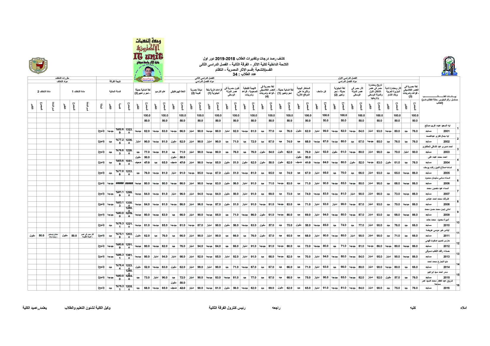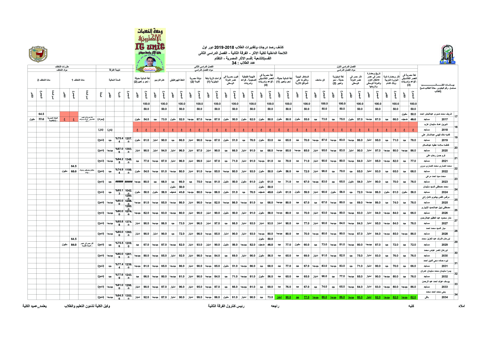 نتيجة الفرقة الثانية قسم الآثار المصرية الفصل الدراسي الثاني من العام الجامعي 2018 / 2019م
