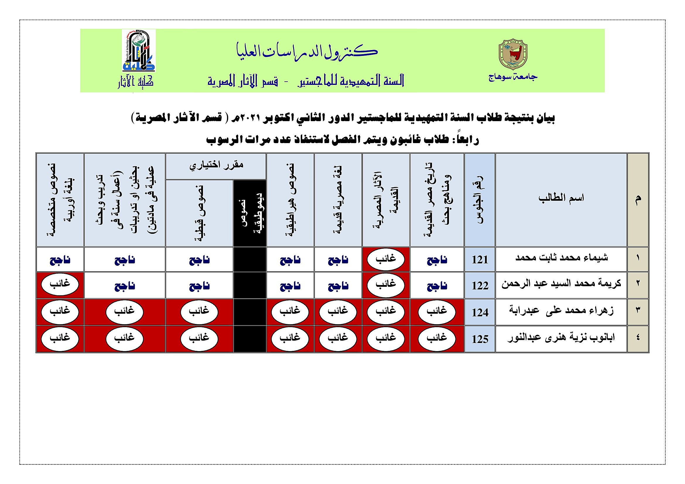 نشر على 2 يناير، 2022نشر في أخبار الكلية،اخبار قسم الآثار المصرية نتيجة تمهيدي ماجستير قسم الآثار المصرية الدور الثاني اكتوبر 2021م تصفّح المقالات جداول امتحانات الفصل الدراسي الأول للعام الجامعي 2021 – 2022منتيجة تمهيدي ماجستير قسم الآثار الإسلامية الدور الثاني اكتوبر 2021م اترك تعليقاً إلغاء الردلن يتم نشر عنوان بريدك الإلكتروني. الحقول الإلزامية مشار إليها بـ *التعليق * الاسم * البريد الإلكتروني * الموقع الإلكتروني احفظ اسمي، بريدي الإلكتروني، والموقع الإلكتروني في هذا المتصفح لاستخدامها المرة المقبلة في تعليقي.