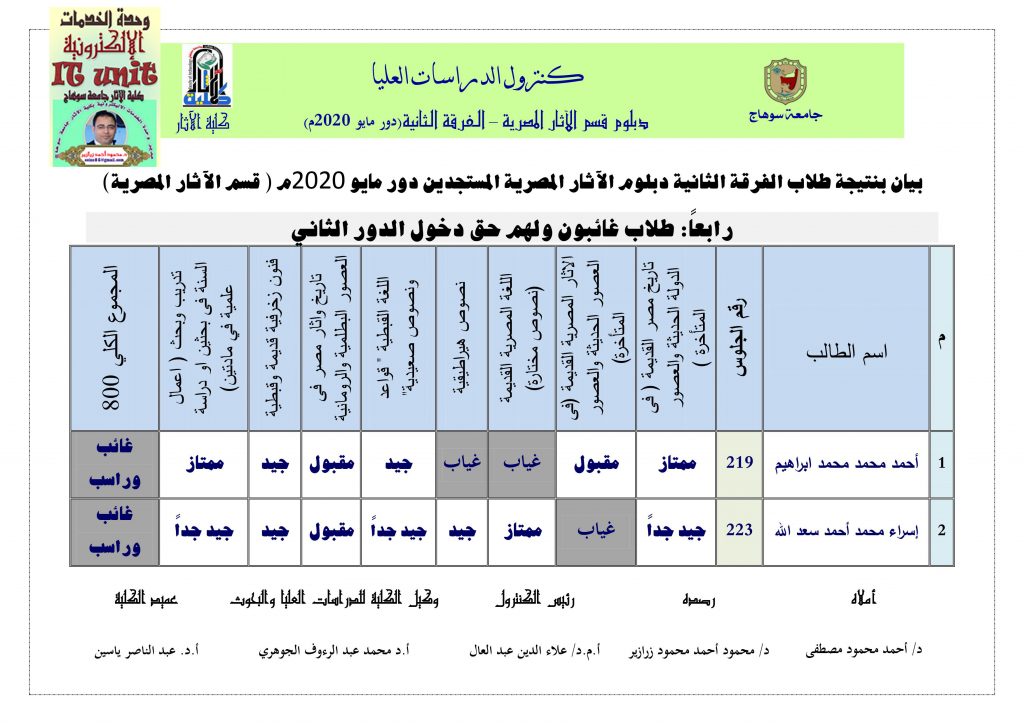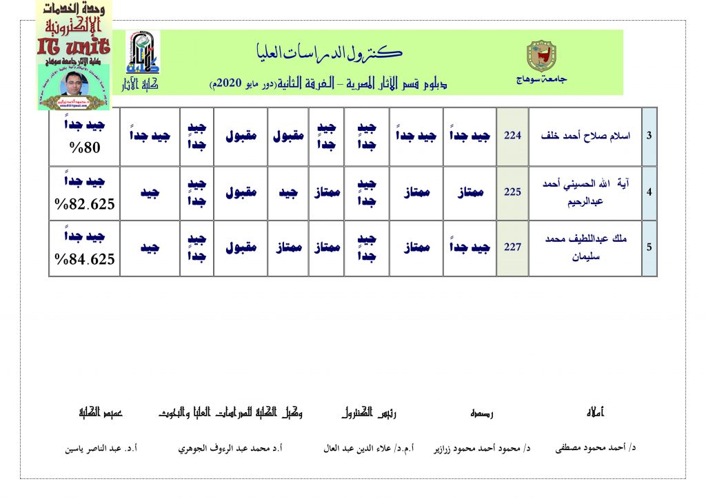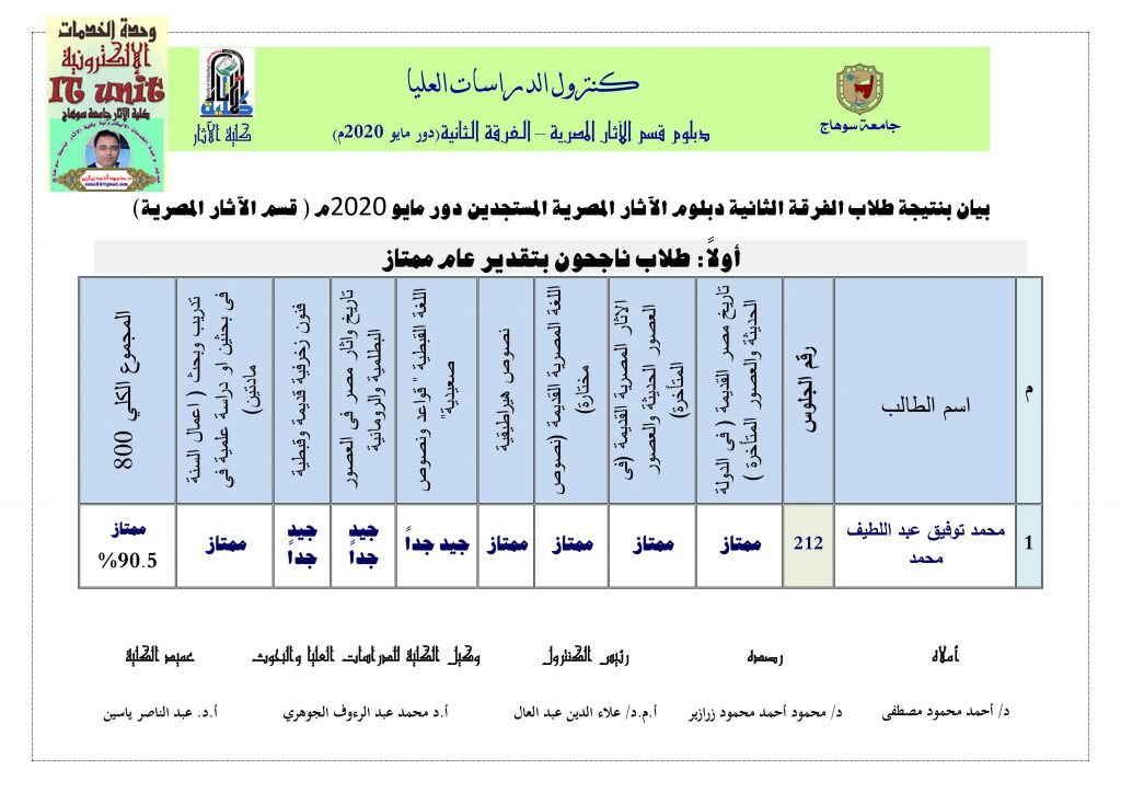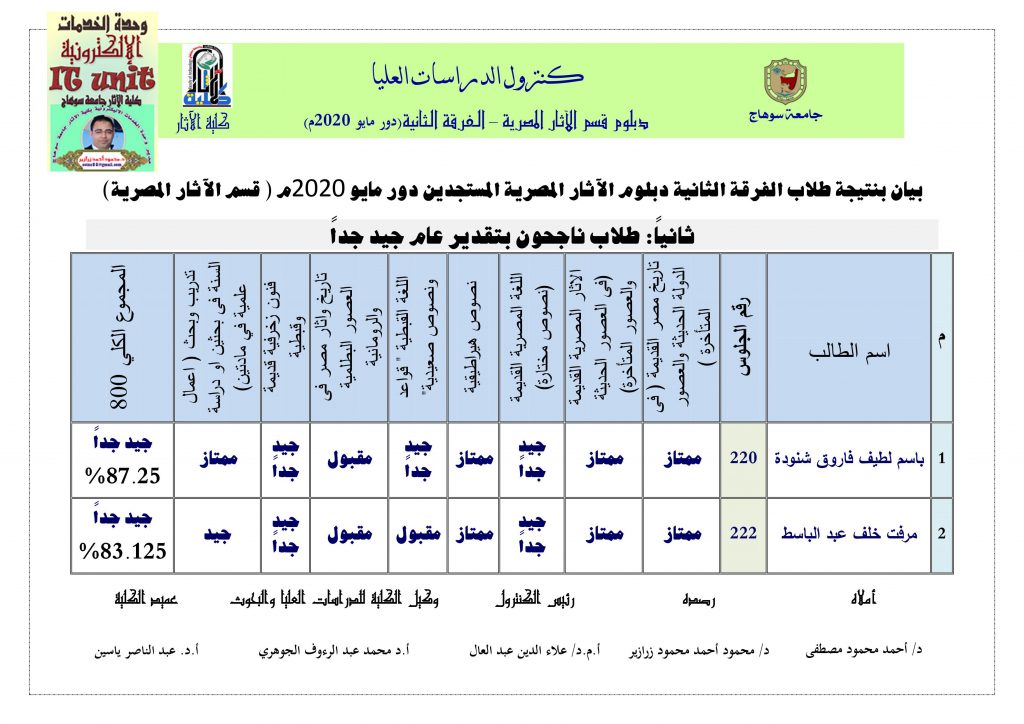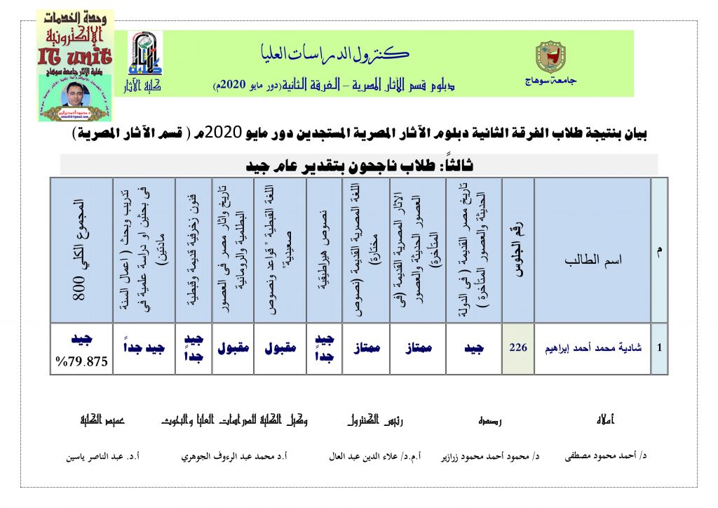 نتيجة دبلوم الآثار المصرية: دور مايو 2020م ( الفرقة الثانية )