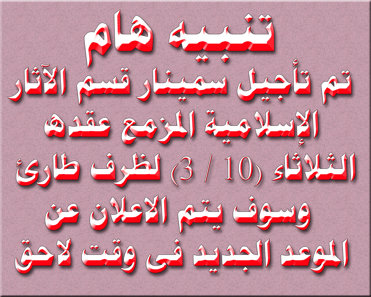 تم تأجيل سمينار قسم الآثار الإسلامية الى وقت لاحق