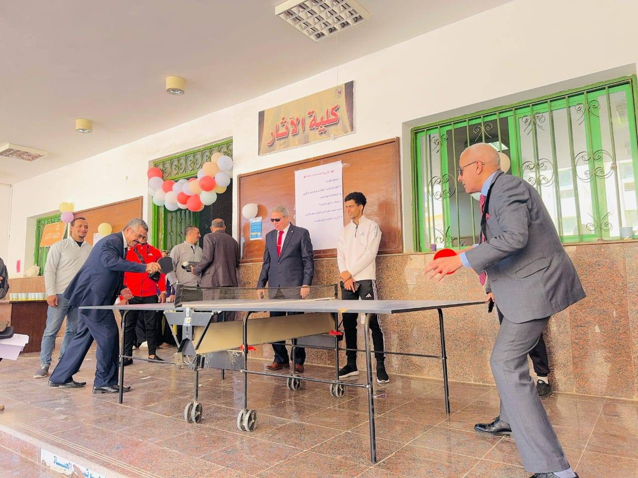 اقيم يوم الثلاثاء الموافق ٢٠٢٥/٤/١٥ اليوم الترويحي الطلابي بين كليتي الآثار والتربية الرياضية وقد شرفت الكلية بحضور معالى ا.د./ عبدالناصر يس نائب رئيس الجامعة وا.د/أشرف سيد محمد البخشونجى عميد كلية الفنون التطبيقية والتراثية وحضور ا.د. فهيم فتحي حجازي عميد الكلية وبمشاركة عدد كبير من اعضاء هيئة التدريس و السيد أمين الكلية وأعضاء الجهاز الإداري والعاملين بالكلية وطلاب الكلية وقد قام بتنظيم اليوم الترويحي طلاب الاتحاد وتتقدم إدارة الكلية لمعالي الاستاذ الدكتور رئيس الجامعة بخالص الشكر والتقدير لإتاحة سيادته الفرصة للكلية لإقامة مثل هذه الانشطة الطلابية ودعمه المستمر للكلية كما تتقدم بخالص الشكر لسعادة ا.د/ عبد الناصر يس لتشريفه بالحضور واهتمامه الدائم بالأنشطة التى تقام فى كلية الآثار كما تتوجه إدارة كلية الآثار بكل الشكر والتقدير لإدارة كلية التربية الرياضية على هذا التعاون والإشراف المشترك لتنظيم مثل هذه الانشطة الطلابية