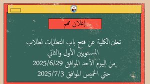 نشر على 29 يونيو، 2025نشر في أخبار الكلية،اخبار التعليم والطلاب إعلان مهم تعلن الكلية عن فتح باب التظلمات لطلاب المستويين الأول والثاني من اليوم الأحد الموافق 2025/6/29 حتي الخميس الموافق 2025/7/3 فتح باب التظلمات لطلاب المستويين الأول والثاني تصفّح المقالات نتيجة الفرقة الثالثة أصبحت متاحة على منصة زادفتح باب التظلمات لطلاب الفرقة الثالثة اترك تعليقاً إلغاء الردلن يتم نشر عنوان بريدك الإلكتروني. الحقول الإلزامية مشار إليها بـ *التعليق * الاسم * البريد الإلكتروني * الموقع الإلكتروني احفظ اسمي، بريدي الإلكتروني، والموقع الإلكتروني في هذا المتصفح لاستخدامها المرة المقبلة في تعليقي.